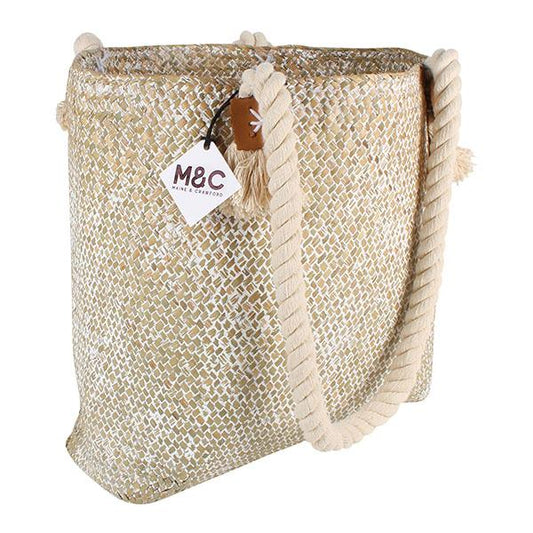 Straw Shoulder Bucket Bag with Vegan Leather Handle